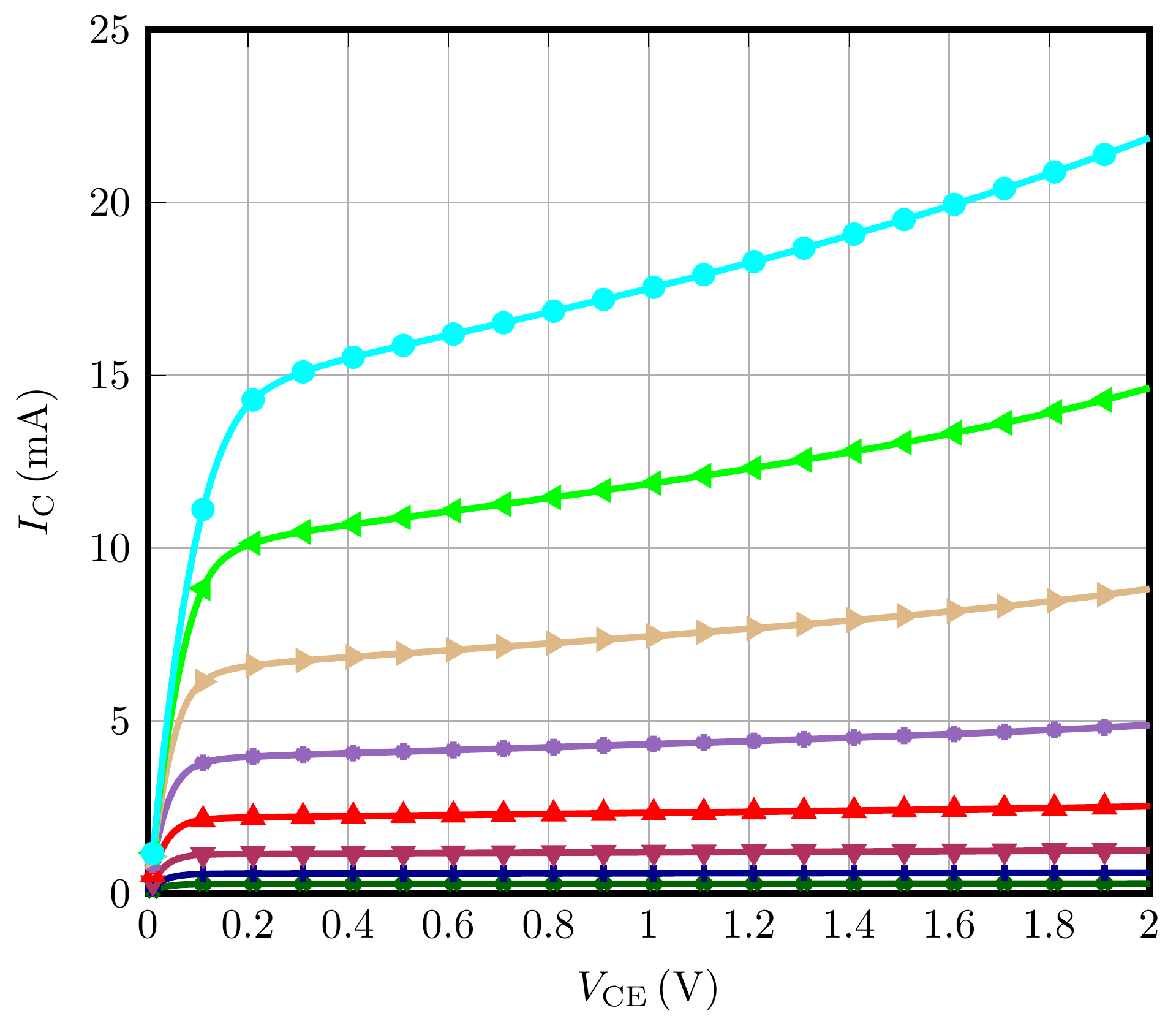and the output characteristics of the bipolar transistor are plotted: